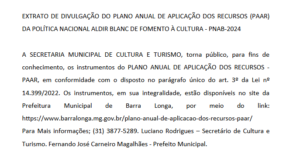 EXTRATO DE DIVULGAÇÃO DO PLANO ANUAL DE APLICAÇÃO DOS RECURSOS (PAAR) DA POLÍTICA NACIONAL ALDIR BLANC DE FOMENTO À CULTURA – PNAB-2024