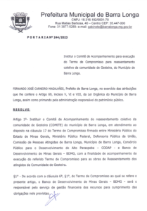 Institui o Comitê de Acompanhamento para execução do Termo de Compromisso para reassentamento coletivo da comunidade de Gesteira, do Município de Barra Longa.