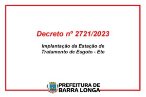 Implantação da Estação de Tratamento de Esgoto -ETE Clique aqui para visualizar o Decreto n° 2721/2023