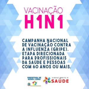 A Prefeitura de Barra Longa, através da Secretaria Municipal de Saúde inicia hoje, 23 de março, a primeira etapa da campanha de vacinação contra a gripe (influenza e H1N1). Nesta primeira etapa, serão imunizadas todas as pessoas com idade a partir dos 60 anos e profissionais de saúde. A campanha