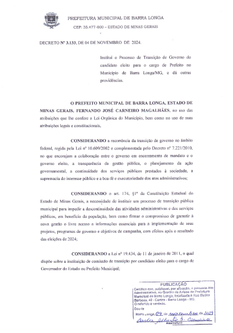 Decreto 3133/2024 – Transição de Governo