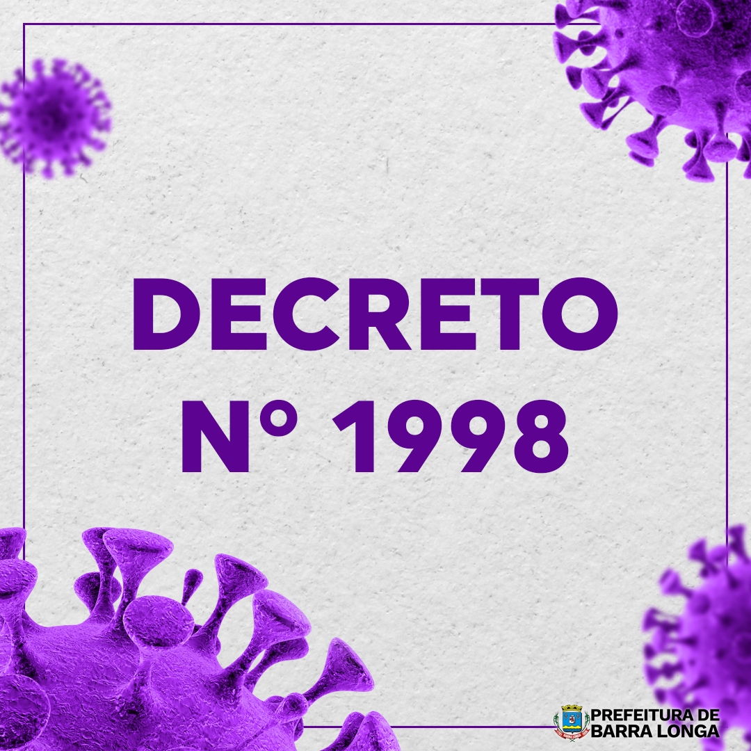 O Decreto Municipal n°1998 dispõe ampliação do prazo, vigência até 04 de abril de 2021, e modificações no decreto 1993, especialmente sobre o protocolo de medidas sanitárias concernentes a Fundação Renova e Empresas terceirizadas, o decreto 1993 dispôs sobre aplicação de medidas sanitárias emergenciais e temporárias de recuperação da integridade do sistema de saúde da microrregião de Ponte Nova através da adoção do protocolo sanitário-epidemiológico denominado “onda roxa” no âmbito do Programa Minas Consciente e dá outras providências.