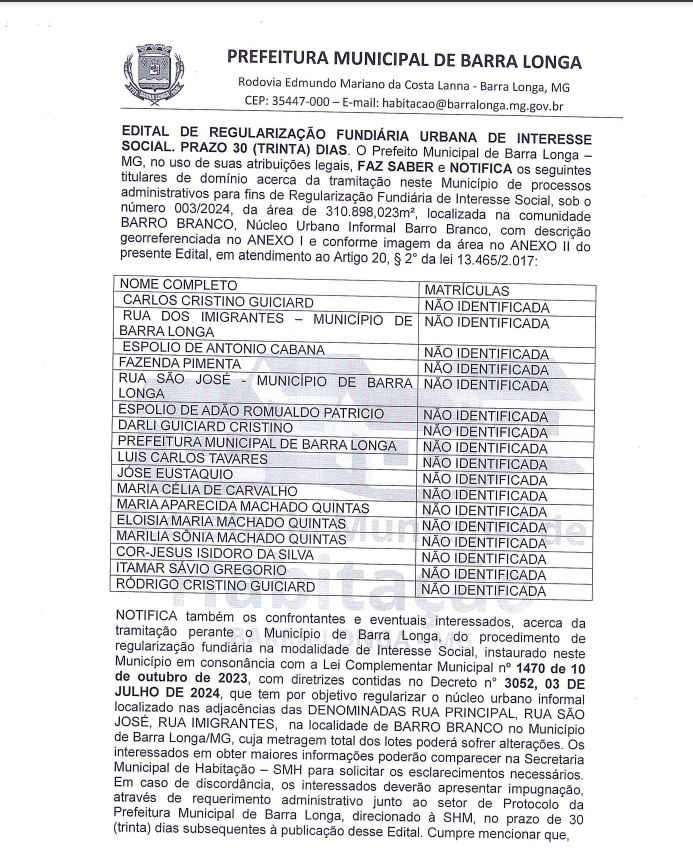 Edital Regularização Fundiária Povoado do Barro Branco