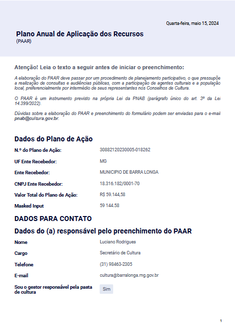 Plano Anual de Aplicação dos Recursos (PAAR)