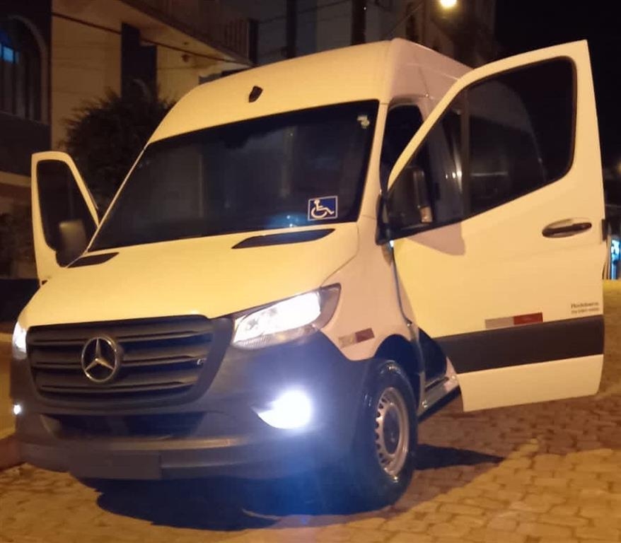 Desta vez, trata-se de uma van adaptada para transporte sanitário e que servirá a rede pública de saúde, a van que tem adequação interna com elevador, assim possibilitando o acesso aos cadeirantes.